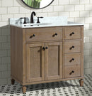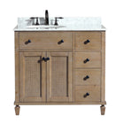 Elevate your bathroom remodel with the 36-inch Annie single sink vanity, designed to be the focal point of your space. The vanity is constructed with a solid wood frame to ensure durability and longevity. The wood is finished with raised grain, adding a distressed and reclaimed look to your bathroom. The three soft closing drawers feature full extension glides, providing ample storage space for your daily toiletries. The vanity is completed with an authentic Italian Carrara marble countertop, enhancing the farmhouse style of your bathroom remodel.