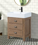 Transform your bathroom with the 30-inch Ava single sink vanity, designed to be the centerpiece of your remodel. Constructed with solid wood, this vanity is built to withstand the test of time. The wood is skillfully finished, creating a distressed and reclaimed look that adds character to your bathroom. The three solid wood dovetail drawers feature full extension glides, providing ample storage space for your daily toiletries. The vanity is completed with a ceramic countertop, adding a touch of elegance to your bathroom remodel.