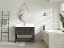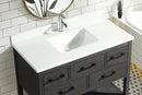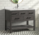 The 42 in. Betty single sink bathroom vanity is a perfect centerpiece for your bathroom remodel. It is skillfully crafted from solid wood to provide long-lasting durability. The wood is wire brushed and finished with raised grain, which gives a distressed and rustic wood appearance. This vanity comes with four solid wood dovetail drawers that have full extension glides, providing ample storage space for your daily toiletries. The vanity is topped with a quartz countertop that adds a touch of elegance to your bathroom remodel.