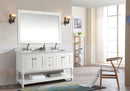 The 60 in. Cape Cod single sink bathroom vanity will be the centerpiece of your bathroom remodel. Constructed of solid hardwood to last a lifetime. Four solid wood dovetail drawers, with full extension glides to store all your toiletries, coupled with beautiful authentic Italian carrara marble will set your bathroom apart from others.