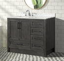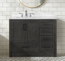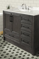 Crafted from solid hardwood with expert craftsmanship, the Huntington single sink bathroom vanity boasts long-lasting durability. Its timeless transitional design is accentuated by a beautiful weathered gray finish that gracefully complements the authentic Italian Carrara marble countertop and black hardware, resulting in an elegant and refined look. Additionally, the vanity features natural solid wood dovetail drawers that add to its aesthetic appeal while providing ample storage space for your daily toiletries. The four drawers, each equipped with full extension glides, enable effortless access to your belongings. Investing in the Huntington vanity is a wise choice, as it guarantees enduring durability, functionality, and style that will stand the test of time.