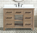 The Lauren single sink bathroom vanity is a striking centerpiece for any bathroom remodel. Expertly crafted from solid wood, it's built to last a lifetime. The wood is skillfully finished with raised grain, creating a distressed and reclaimed wood look that adds character and charm to your bathroom. With six solid wood dovetail drawers equipped with full extension glides, you'll have ample storage space for all your daily toiletries. Upgrade your bathroom with the Lauren vanity and enjoy its timeless beauty and functionality.
