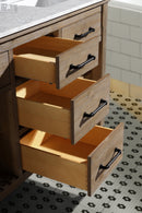 The Lauren single sink bathroom vanity is a striking centerpiece for any bathroom remodel. Expertly crafted from solid wood, it's built to last a lifetime. The wood is skillfully finished with raised grain, creating a distressed and reclaimed wood look that adds character and charm to your bathroom. With three solid wood dovetail drawers equipped with full extension glides, you'll have ample storage space for all your daily toiletries. Upgrade your bathroom with the Lauren vanity and enjoy its timeless beauty and functionality.