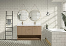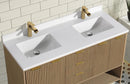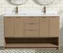 Transform your bathroom with the 55 inch San Diego double sink vanity, which will serve as the focal point of your remodel. The vanity is expertly crafted from solid wood to ensure durability for years to come. The wood is finished in beautiful gray oak. The three solid wood dovetail drawers feature full extension glides, providing ample storage space for your daily toiletries. The mid century modern style is completed with a sturdy quartz countertop that complements the design of the vanity.
