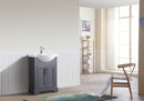 The SoHo is a transitional style bathroom vanity, crafted from sturdy solid wood/manufactured wood, adorned with chrome hardware, and equipped with an integrated ceramic sink. This vanity is elegantly finished in a captivating charcoal gray, making it an ideal choice for compact bathrooms.