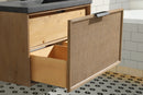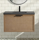 Revamp your bathroom by incorporating the 36 inch Solana single sink vanity as the centerpiece of your renovation project. This vanity is skillfully constructed from solid wood, ensuring its longevity for many years to come. Its wood is specially treated with raised grain, resulting in a charming distressed and reclaimed appearance. The front drawer panel features a subtle wicker finish, while the two solid wood dovetail drawers offer generous storage capacity for your daily essentials. To complete the modern farmhouse style, the vanity is topped off with a robust concrete countertop that beautifully complements its overall design.