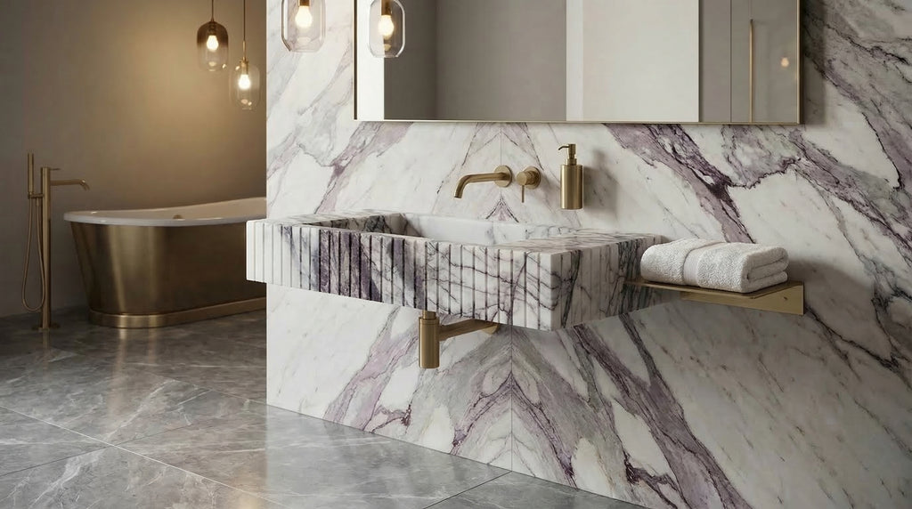 New York Marble Wall-mount Bathroom Sink Fluted (W)12" (W)20" (H)5"offers;