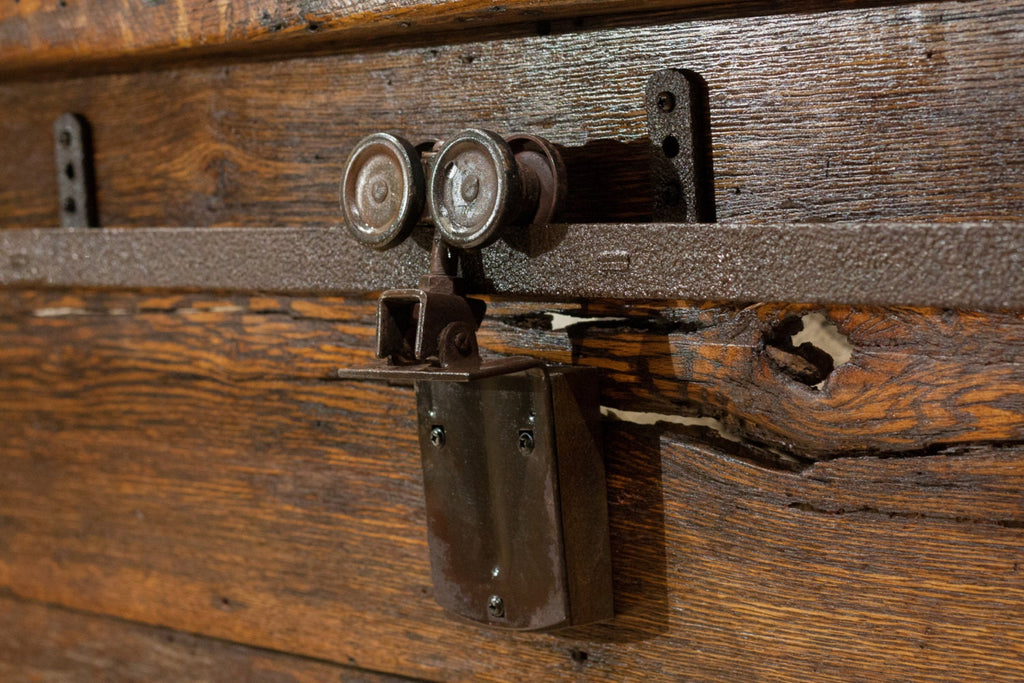 This bed stands out for its rustic charm and the creative touch of actual vintage sliding barn door hardware, recalling those magical days of play and adventure from our childhood summers. Shown in reclaimed antique oak with Provincial stain, it is also available in knotty pine, wormy antique chestnut, rustic tulip tree and weathered style barn boards.