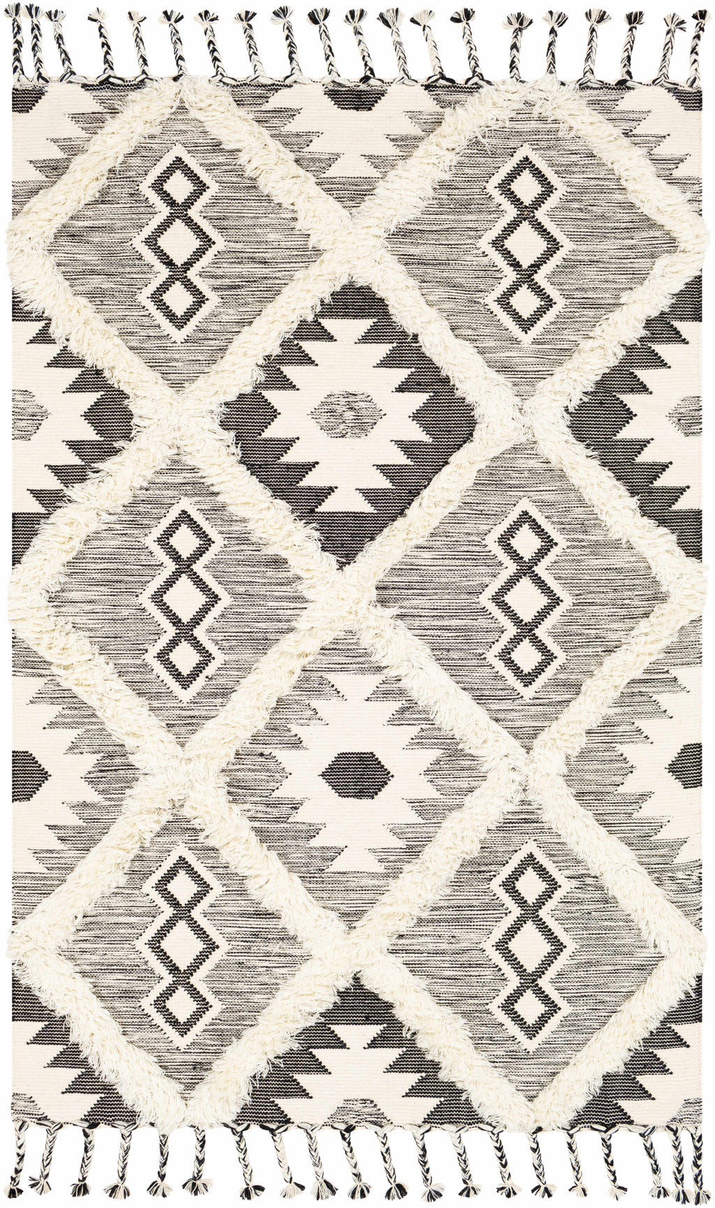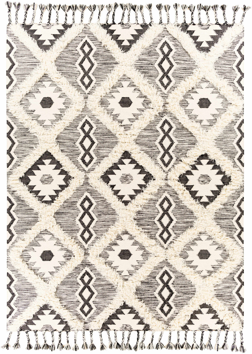 Jarales Cream/Black Tribal Tassel Wool Rug - Clearance