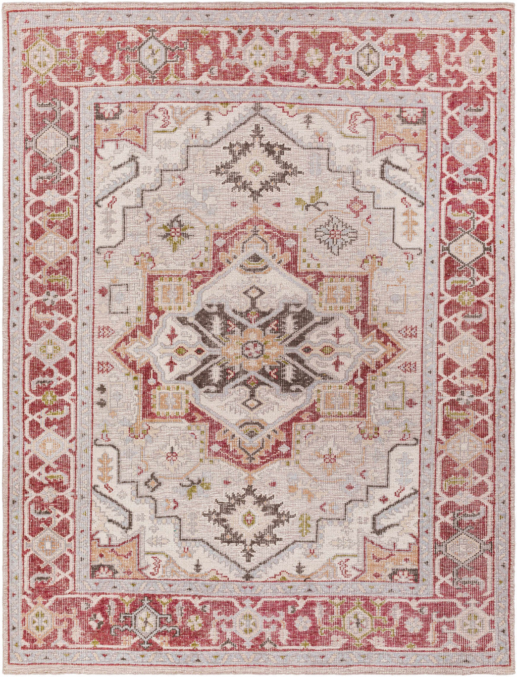 Colors: Charcoal, Cream, Light Gray, Pale Blue, Medium Green, Brick Red, Dark Red, Peach |