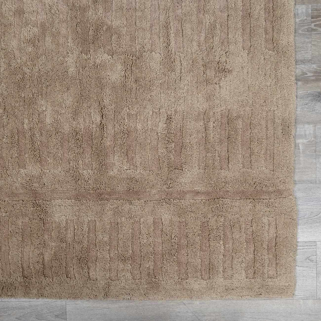 Transform your living space into an oasis of luxury with the intricate hand tufted construction of this exquisite wool rug. Indulge in the velvety high pile and elevated 0.7 inch thickness that adds a touch of sophistication to any room. The lavish taupe, prairie dust, and brown hues complement the contemporary revival, broken striped style, making it the perfect statement piece for your home. And the best part? You can easily maintain its pristine appearance by simply tossing it in the washing machine, making it a practical and affordable alternative to Tscudi.