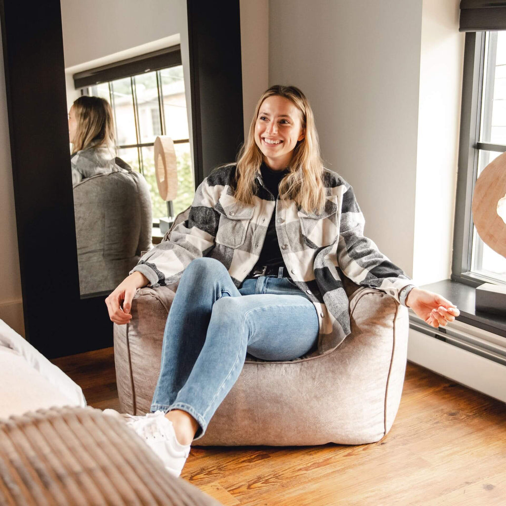 Snuggle up and feel the cozy wrap of the Big Joe Hug. Structured stitching on the back panel ensures you get the support you need for reading, gaming, or taking a snooze. On the move? Take the Hug with you wherever you go with its convenient carrying handle.