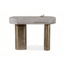 This console is a statement piece with its distinctive design. The top is adorned with a special effect stone paint finish, creating a textured and visually appealing look. The single drawer provides convenient storage space, while the antique brass legs add a touch of luxury and warmth. This console is sure to elevate any room.