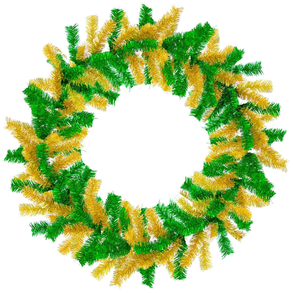 Decorative 18in Diameter door hanging wreaths made by Lee Display.  With Green and Gold colored tinsel brush, this wreath is perfect for your St. Patrick's Day holiday decor.