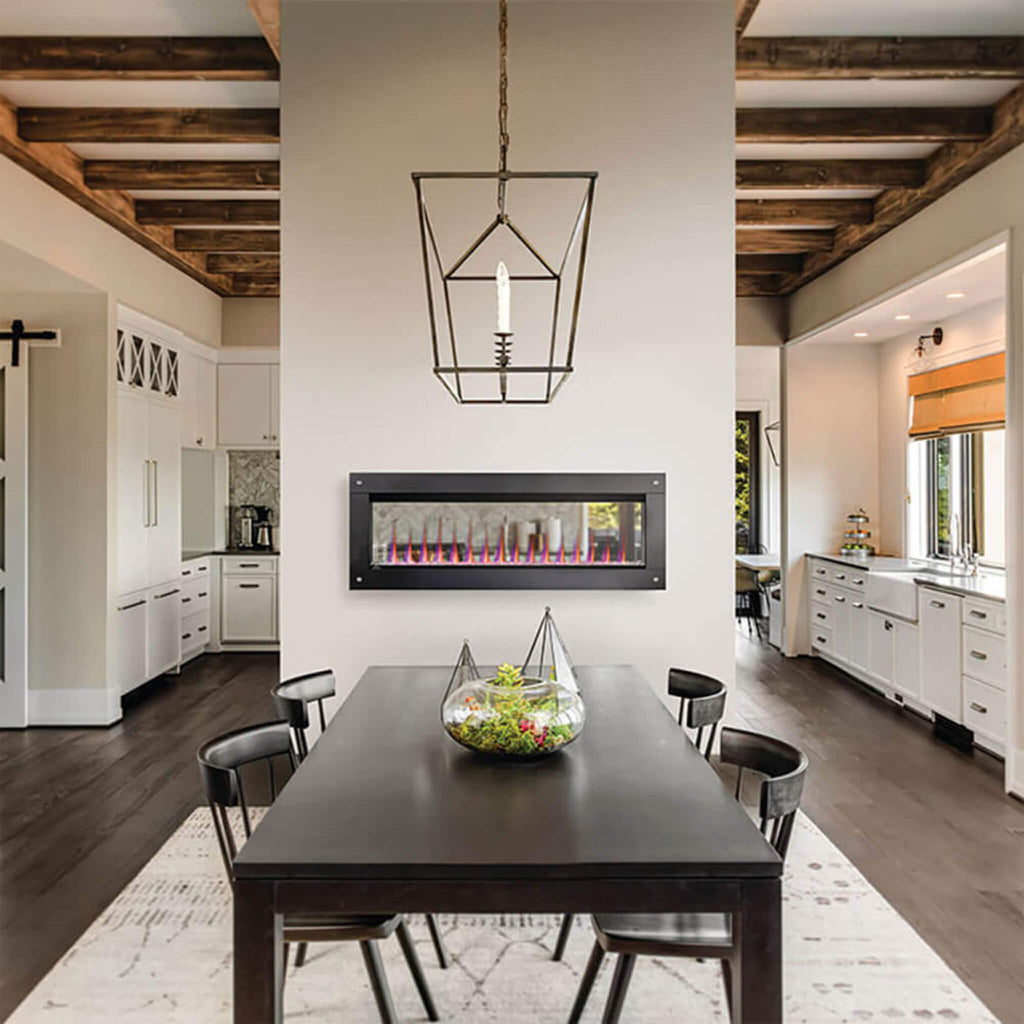- Behold the industry’s first truly see-through fireplace, allowing you to enjoy the mesmerizing flames from both sides and enhancing the ambiance of two separate spaces simultaneously.
