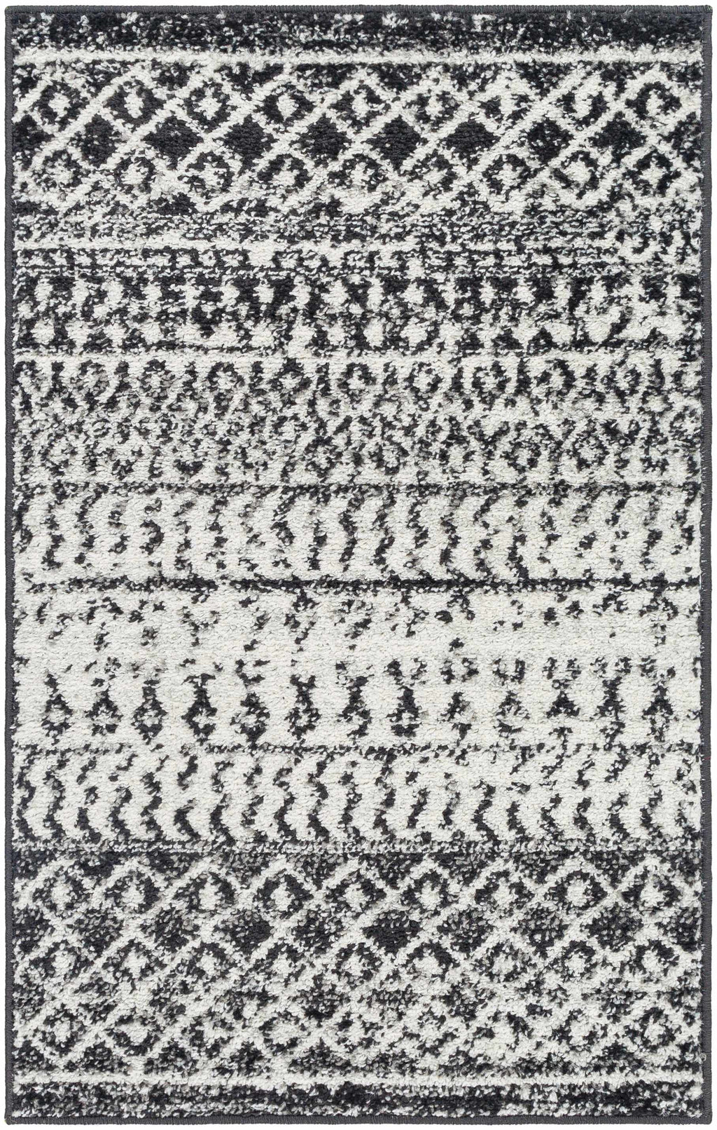 About: Tones of black and white meet on this rug. Be it Boho or Farmhouse, with its versatile design, this rug will match your style regardless. You will fall in love with its fabulous pattern and soft texture. |