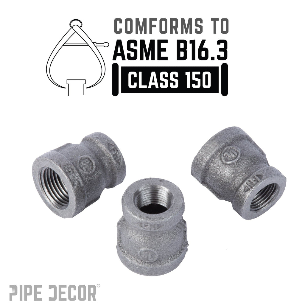 These cylindrical fittings are used to connect two pipes of different diameters. You can use a reducing coupling to add height or length to table legs, bar stool legs, clothing racks, and more by attaching two pipes together. Our fittings are made with durable, industrial-grade malleable iron. Fittings are 100% authentic and are made to stand the test of time. You will know PIPE DECOR parts and accessories when you hold them. Beauty and beast. Strength and style. These are real industrial fittings for your decorations and designs. Accept no substitutes. Extra pieces and accessories are available for your custom projects and expansions. Plug and play as desired.