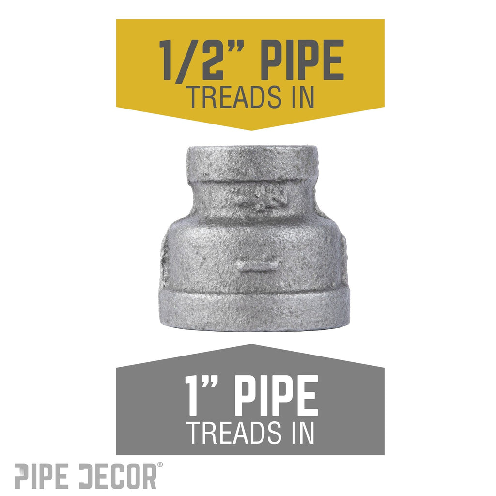 These cylindrical fittings are used to connect two pipes of different diameters. You can use a reducing coupling to add height or length to table legs, bar stool legs, clothing racks, and more by attaching two pipes together. Our fittings are made with durable, industrial-grade malleable iron. Fittings are 100% authentic and are made to stand the test of time. You will know PIPE DECOR parts and accessories when you hold them. Beauty and beast. Strength and style. These are real industrial fittings for your decorations and designs. Accept no substitutes. Extra pieces and accessories are available for your custom projects and expansions. Plug and play as desired.