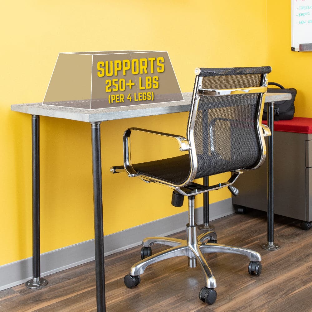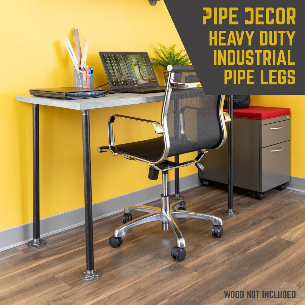 PIPE DECOR industrial table legs will add a touch of modern chic to any room in your house. Sturdy steel pipe easily supports the wooden tabletop of your choice. Use these pipe legs for kitchen tables, sofa tables, entry tables, dining buffets, or desks. The set comes with everything you will need to assemble the table legs, plus step-by-step illustrated instructions.