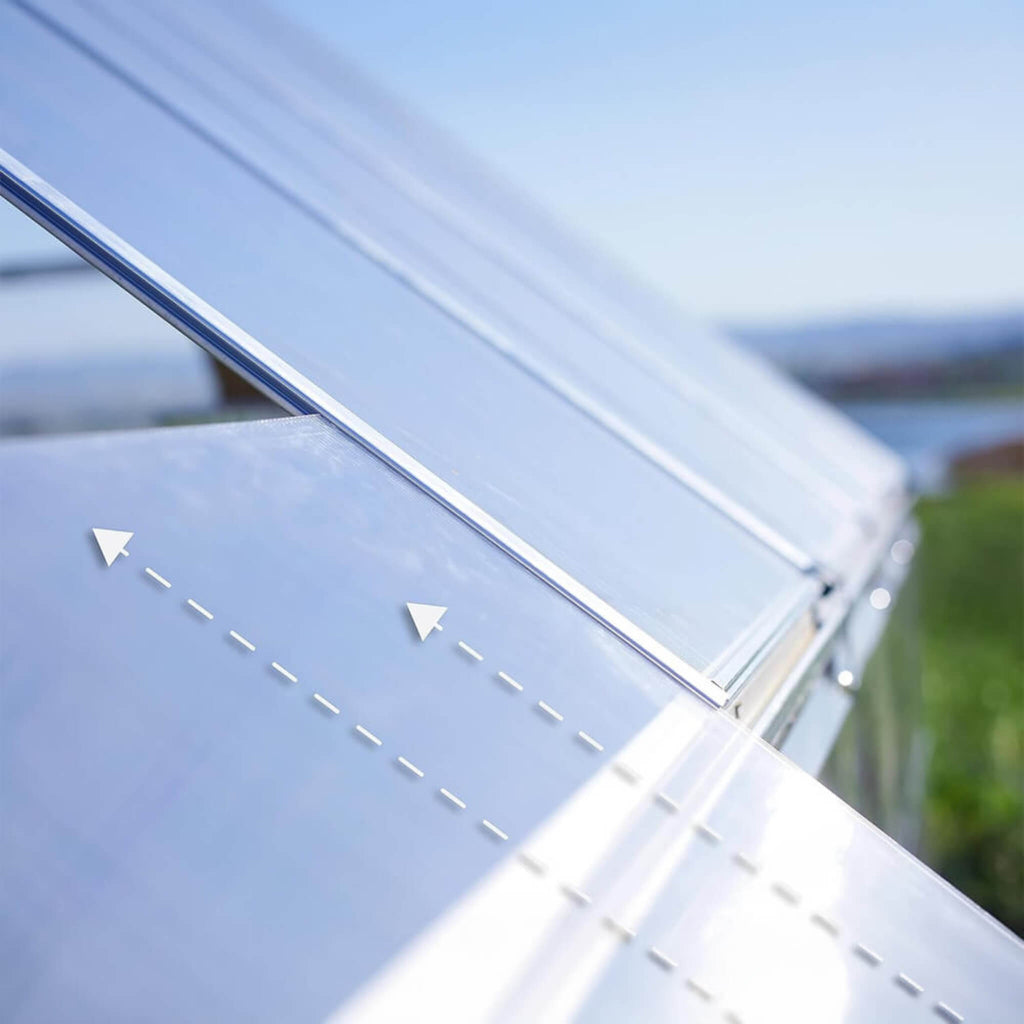Premium 10x24FT greenhouse features twin-wall polycarbonate roof panels that diffuse 70% of harsh sunlight for ideal plant growth without sunburn. Clear wall panels deliver 90% light transmission while blocking harmful UV rays, creating the perfect environment for your plants to thrive.