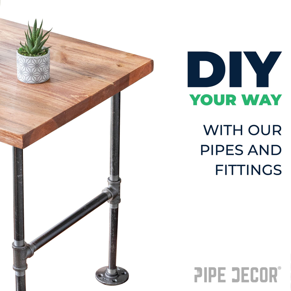 Add height or length to table legs, bar stools, clothing racks, and more by attaching two pipes of different lengths together. Our fittings are made with durable, industrial-grade malleable iron. Fittings are 100% authentic and are made to stand the test of time You will know PIPE DECOR parts and accessories when you hold them. Beauty and beast. Strength and style. These are real industrial fittings for your decorations and designs. Accept no substitutes. Extra pieces and accessories are available for your custom projects and expansions. Plug and play as desired.