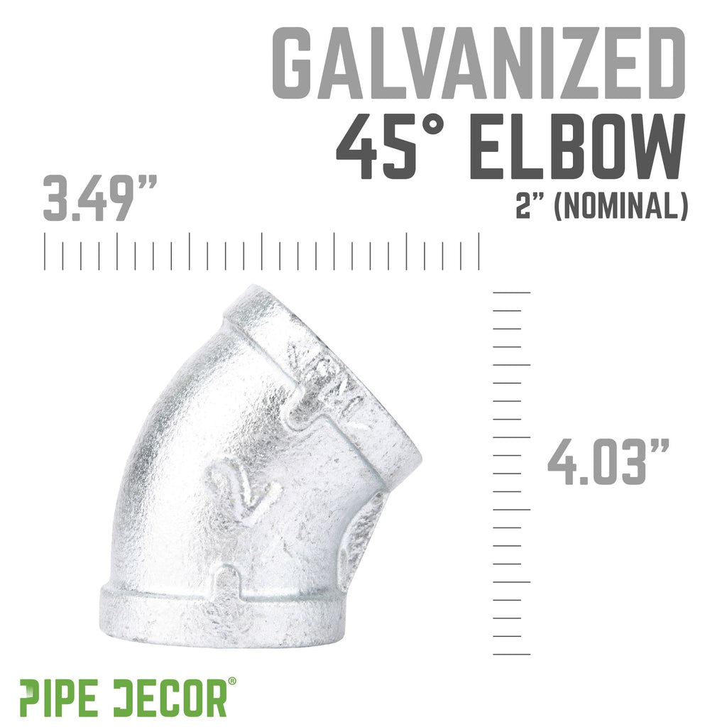 Go in a different direction with galvanized 45-degree elbows. They’re perfect for building pipe furniture with unique shapes. Create a one-of-a-kind shelf, lamp, or a piece of art that perfectly fits your space. Galvanized fittings are silver in color with a shiny finish that brings a clean, polished look to your pipe furniture. Our fittings are made with durable, industrial-grade malleable iron. Fittings are 100% authentic and are made to stand the test of time. You will know PIPE DECOR parts and accessories when you hold them. Beauty and beast. Strength and style. These are real industrial fittings for your decorations and designs. Accept no substitutes. Extra pieces and accessories are available for your custom projects and expansions. Plug and play as desired.