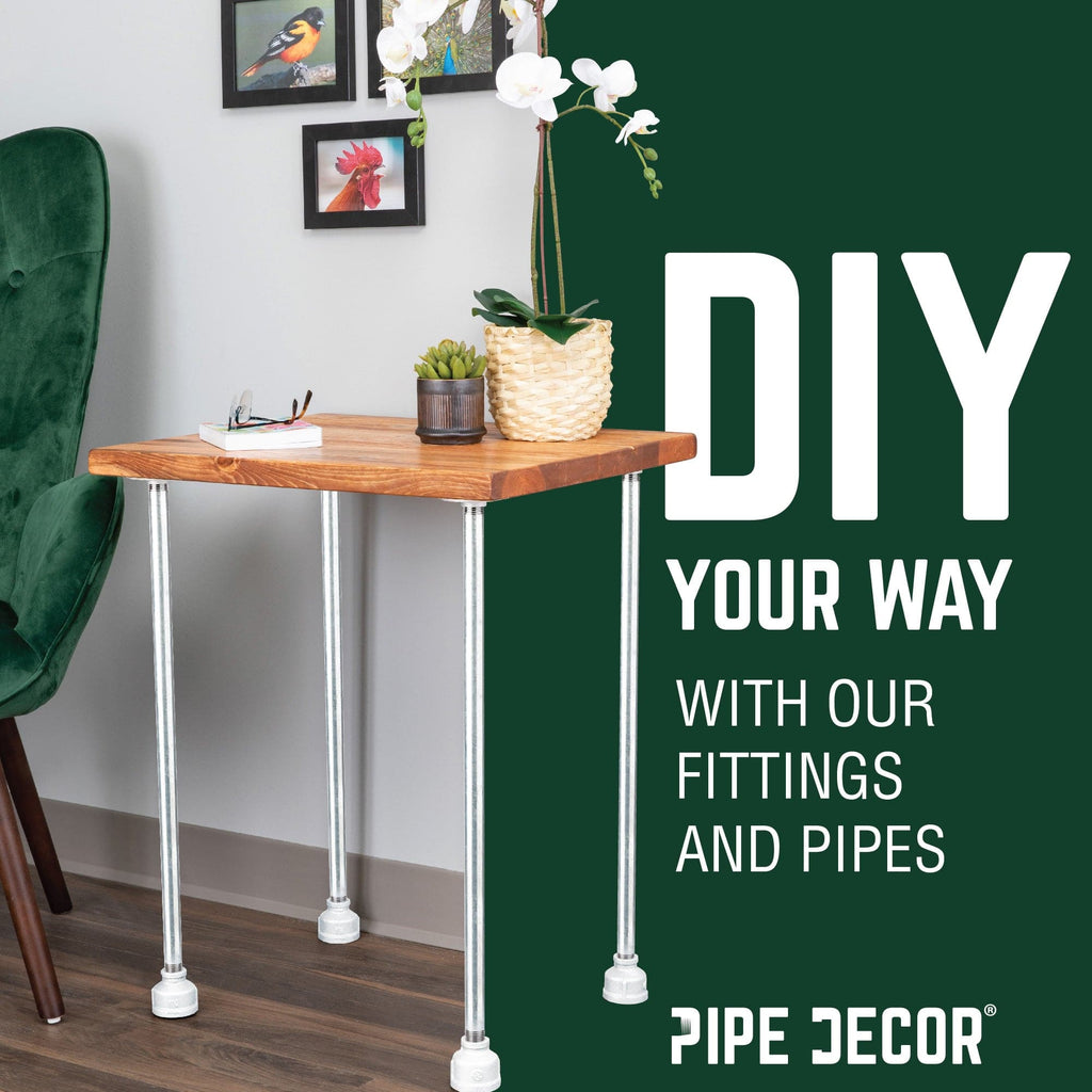 These cylindrical fittings are used to connect two pipes of different diameters. You can use a galvanized reducing coupling to add height or length to table legs, bar stool legs, clothing racks, and more by attaching two pipes together. Galvanized fittings are silver in color with a shiny finish that brings a clean, polished look to your pipe furniture. Our fittings are made with durable, industrial-grade malleable iron. Fittings are 100% authentic and are made to stand the test of time. You will know PIPE DECOR parts and accessories when you hold them. Beauty and beast. Strength and style. These are real industrial fittings for your decorations and designs. Accept no substitutes. Extra pieces and accessories are available for your custom projects and expansions. Plug and play as desired.