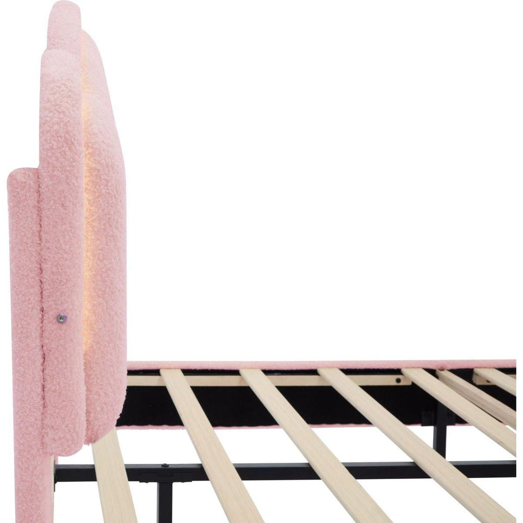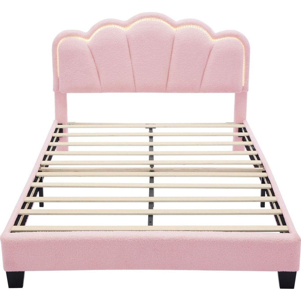 2-Pieces Bedroom Sets Twin Size Upholstered LED Platform Bed with Storage Ottoman, Pink