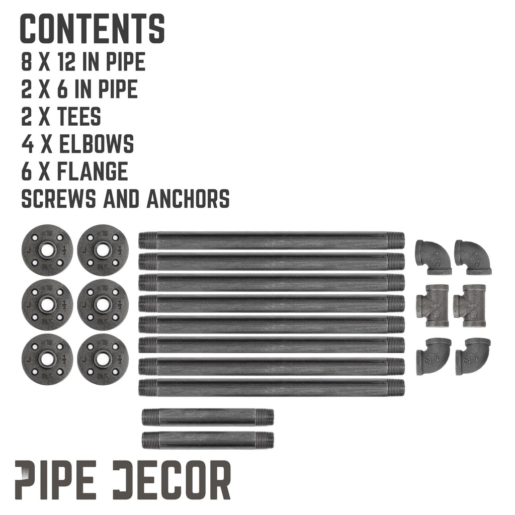Pipe Decor's 2-Tier Shelf is a statement piece for any wall in your home. This wall mounted shelving unit utilizes authentic steel plumbing pipe and iron fittings creating a true vintage look and feel. Reminiscent of the industrial age, the framework for this unit lends itself to a multitude of decors, Industrial Farmhouse, Victorian Vintage, Rustic, Retro and Modern. Place the 2-Tier shelf anywhere in your house, loft or condo and add the shelving material of your choice to create a unique look. This piece will bring beauty and function to your home, retail, or commercial space. You will know Pipe Decor parts and accessories when you hold them. Beauty and beast. Strength and style. This is real industrial pipe for your creative design needs. Accept no substitutes. All our pipe and fittings come coated in a light industrial grease to prevent rusting. Clean and seal each piece, before assembly, to ensure that they stay rust-free. After cleaning, seal the pipe with polyurethane spray to protect it from rust and scratches.