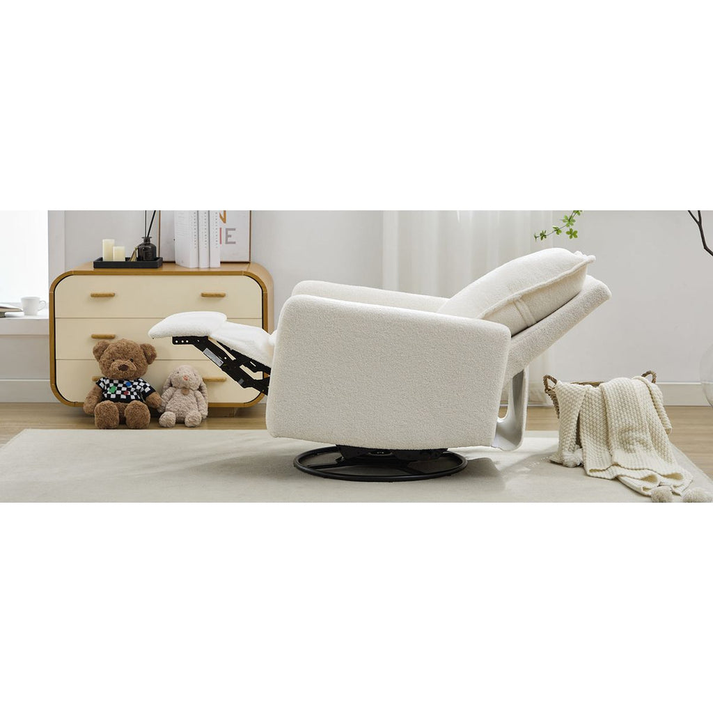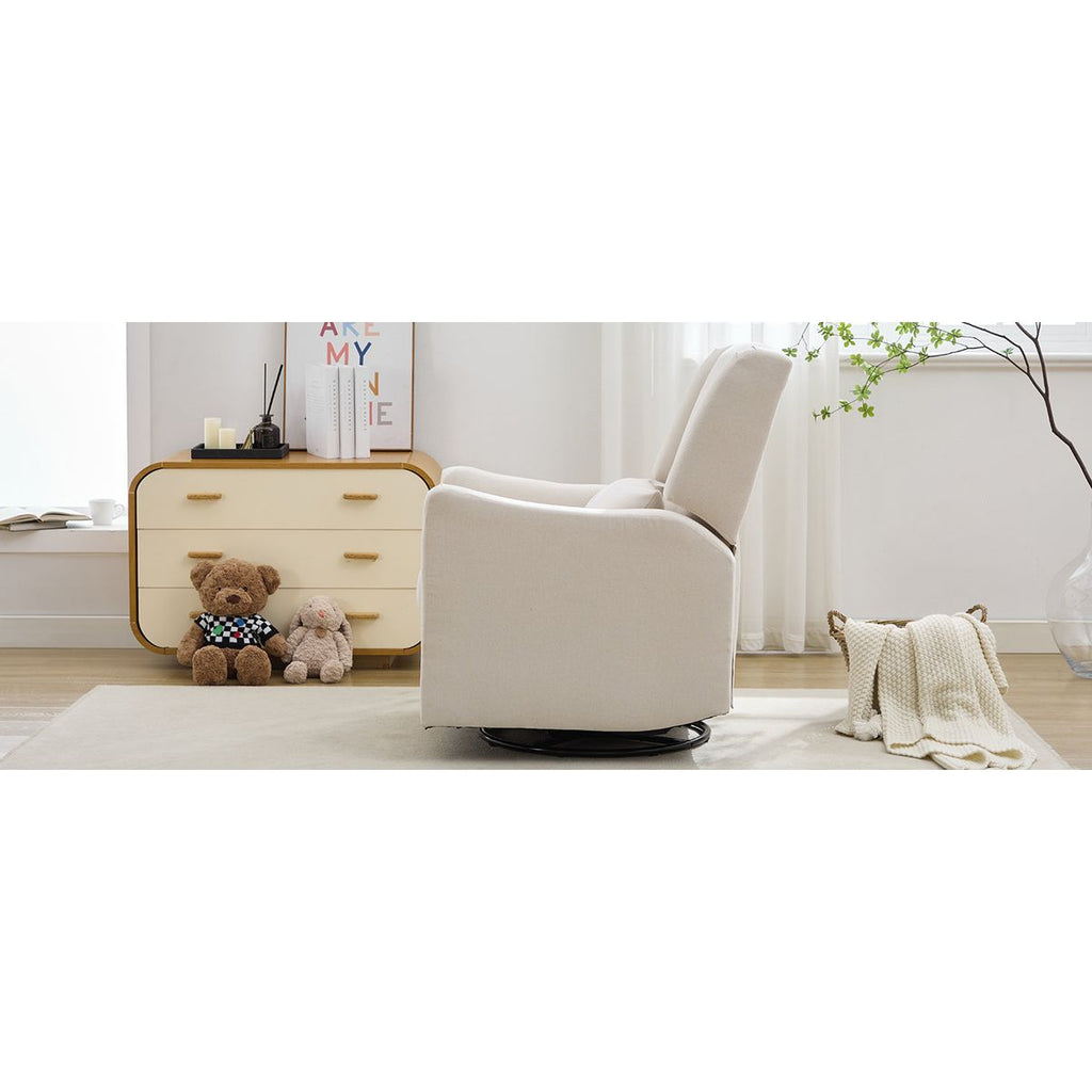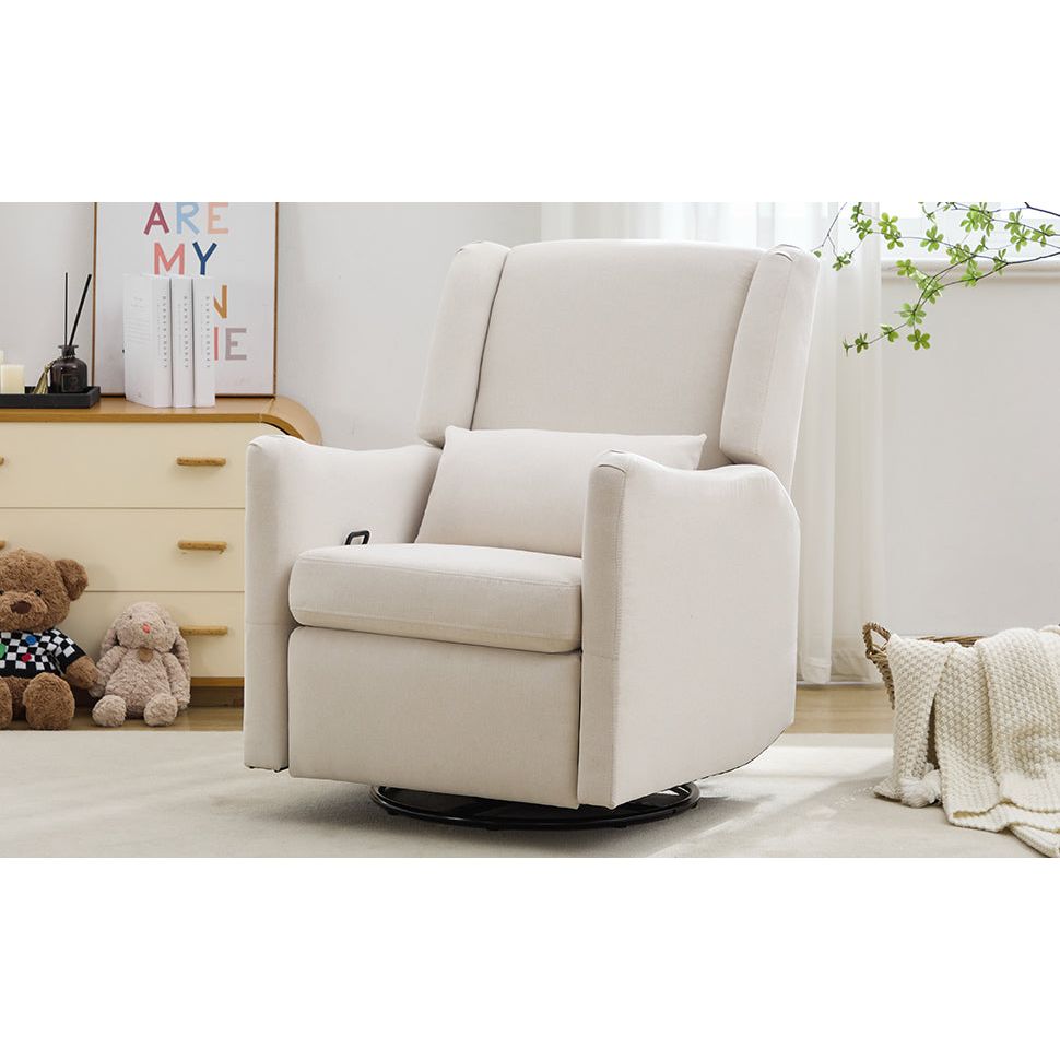 Relax and recline after a long day in this sleek power recliner. It's built on a Swivel Glider Nursery Chair has been designed for mamas and papas with a high plush pillow back for head and neck support. The smooth gliding, 360-degree swivel base allows you to gently lull your babe to sleep. It's a stylish but also more sustainable choice for the modern nursery.