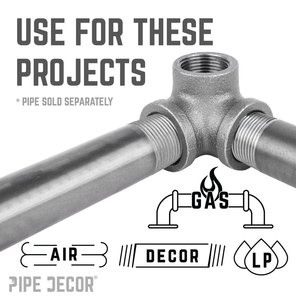 These 3/4 in. fittings are perfect for building anything from clothing racks to shelving units. Authentic industrial fittings can support hundreds of pounds of weight when installed correctly: you can create wine bottle displays, towel bars, coat hooks, and more. Embark on a large-scale DIY adventure or use these fittings for quick weekend projects like cabinet hardware, footstools, small tables, or door pulls.