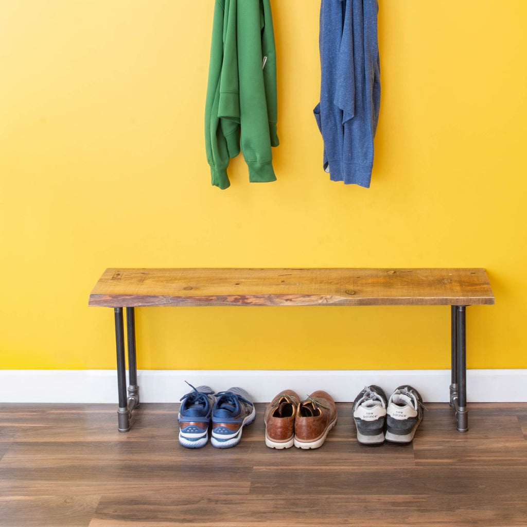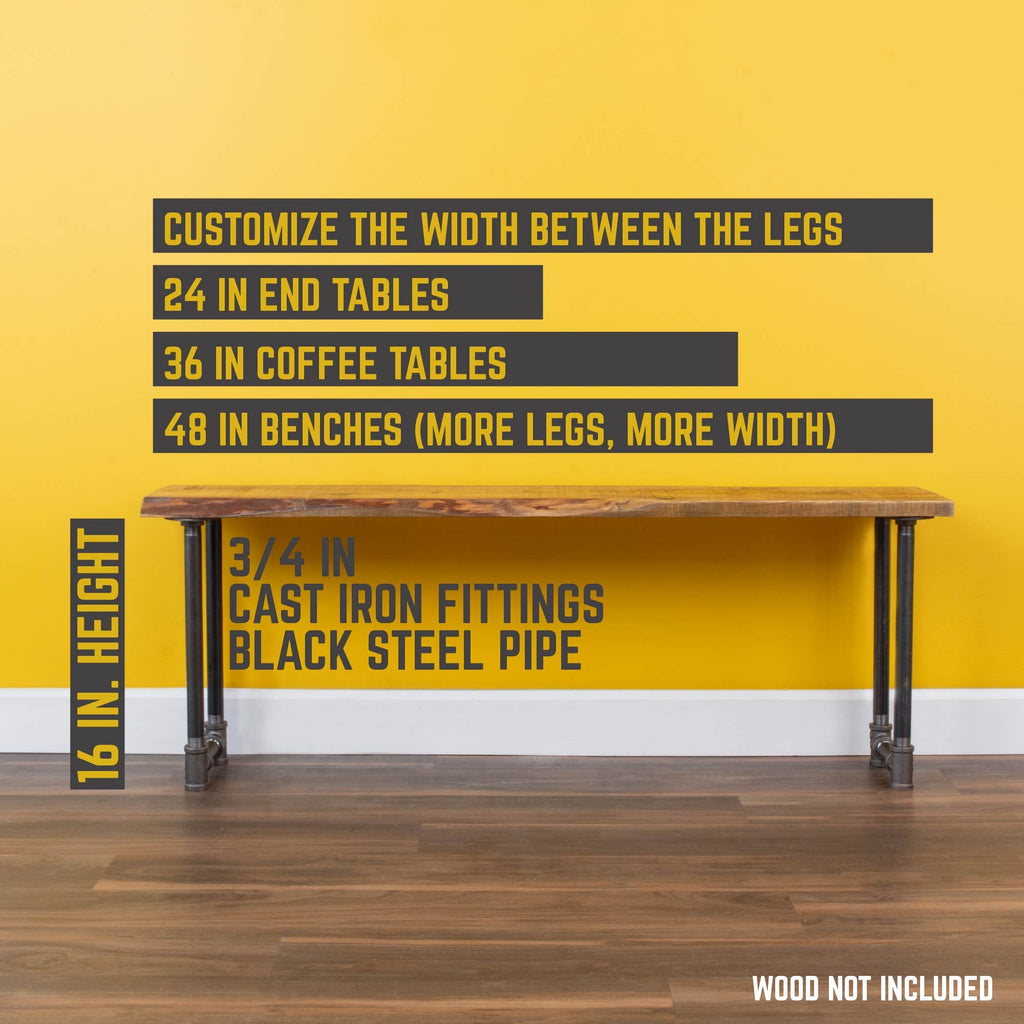 Complete your entryway or mudroom with this easy to assemble bench leg kit. Create a spot to put on shoes or store your backpacks. Combine with our hook kits for additional organization and transform your entryway in an afternoon. This kit can also be used to make end tables, nightstands, or a coffee table. PIPE DECOR industrial bench legs will add a touch of modern industrial chic to any room in your house. Sturdy steel pipe easily supports the wooden bench top of your choice. The set comes with everything you will need to assemble the bench legs, plus step-by-step illustrated instructions. You will know PIPE DECOR parts and accessories when you hold them. Beauty and beast. Strength and style. This is real industrial pipe for your creative design needs. Accept no substitutes. All our pipe and fittings come coated in a light industrial grease to prevent rusting. Clean and seal each piece, before assembly, to ensure that they stay rust-free. After cleaning, seal the pipe with polyurethane spray to protect it from rust and scratches.