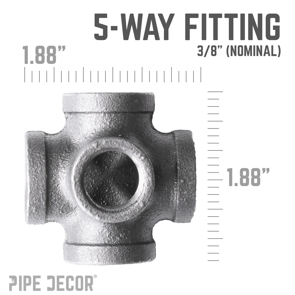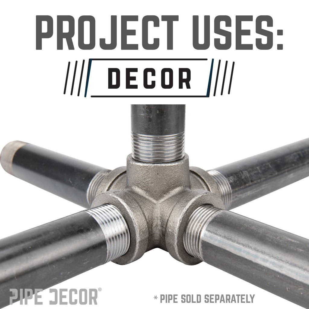 PIPE DECOR is always pushing the boundaries of designing with pipe. We created these fittings to give you more choices to build your dream projects. A PIPE DECOR exclusive, this 5-way fitting connects 5 pipes together. Use one as the center of a pipe light fixture or for other creative projects. The sky’s the limit!