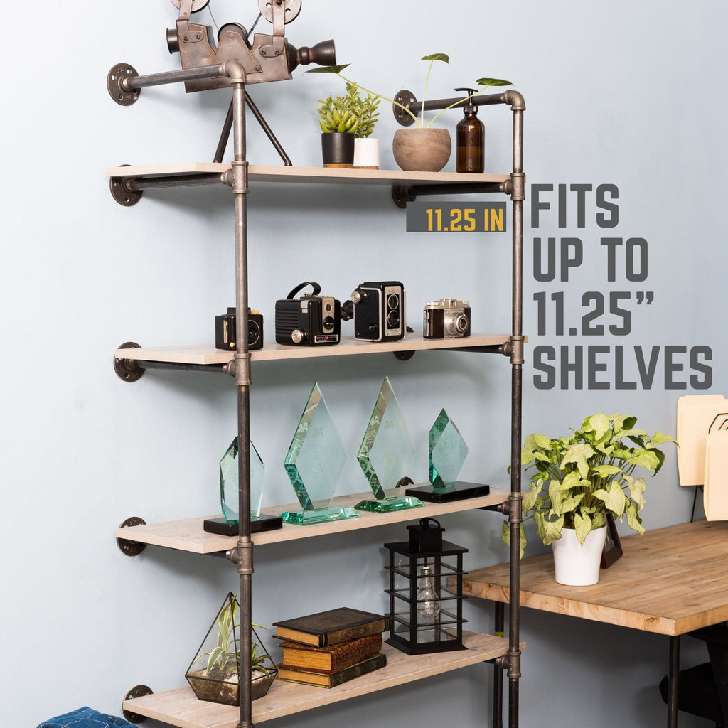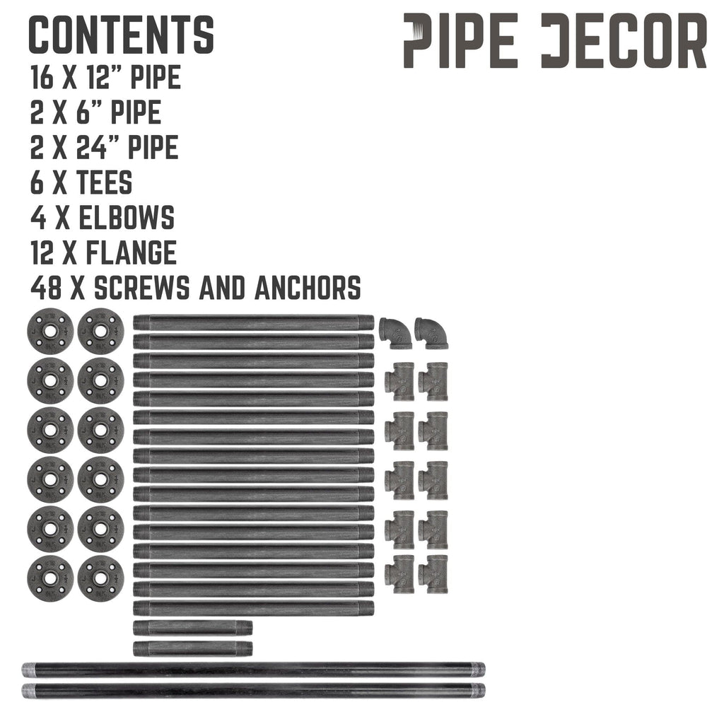 Pipe Decor's 4-Tier floor and wall mounted shelf is a statement piece for any wall in your home. This floor and wall mounted shelving unit utilizes authentic steel plumbing pipe and malleable cast iron fittings creating a true vintage look and feel. Reminiscent of the industrial age, the framework for this unit lends itself to a multitude of decors, Industrial Farmhouse, Victorian Vintage, Rustic, Retro and Modern. Place the 4-Tier shelf next to a velvet sofa to create a unique juxtaposition of elements. This piece will bring beauty and function to any room in your home, retail, or commercial space. You will know Pipe Decor parts and accessories when you hold them. Beauty and beast. Strength and style. This is real industrial pipe for your creative design needs. Accept no substitutes. All our pipe and fittings come coated in a light industrial grease to prevent rusting. Clean and seal each piece, before assembly, to ensure that they stay rust-free. After cleaning, seal the pipe with polyurethane spray to protect it from rust and scratches.