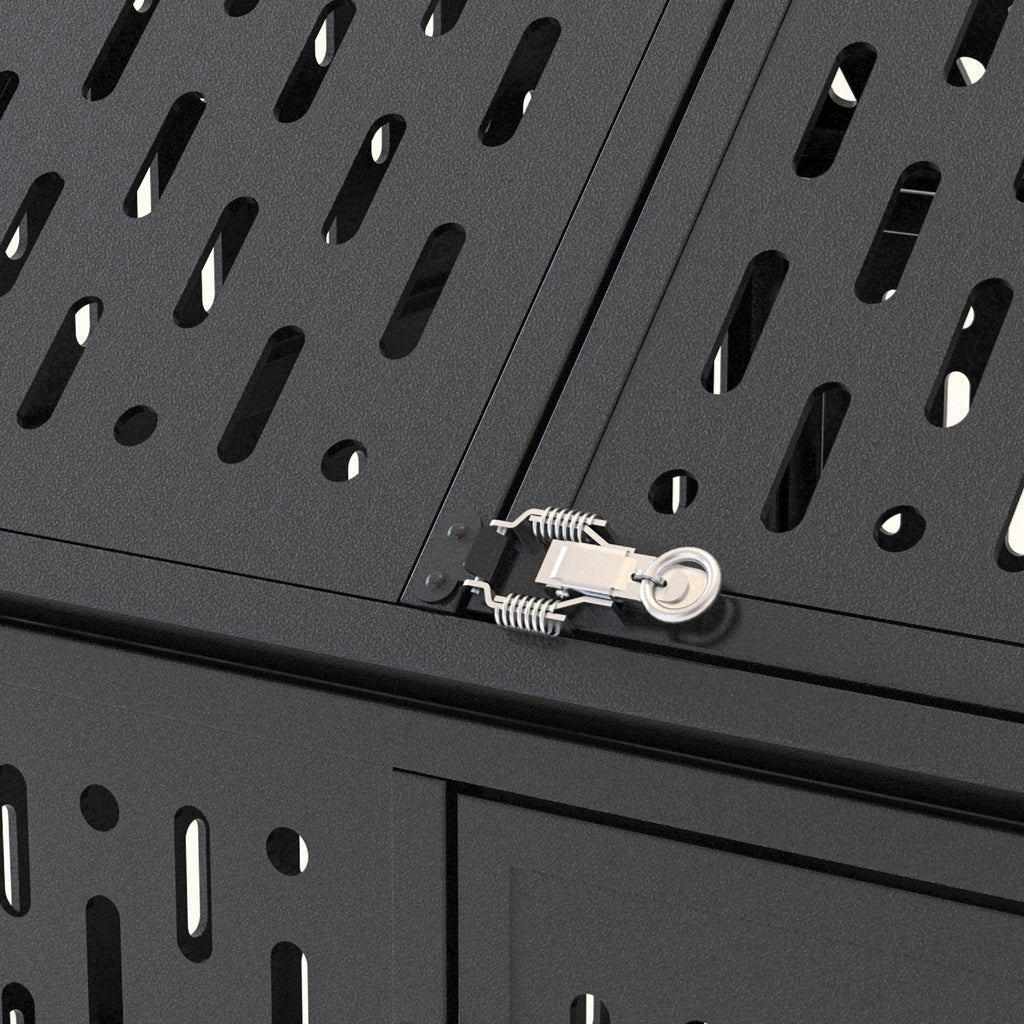 - Indestructible Structure: This large dog crate is constructed with sturdy steel panels with ventilation holes, strong & durable. Enclosed design provides safe space,enough air and light,also prevents harm caused by bites. 4 locks for 2 doors, escape proof.