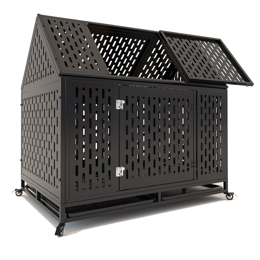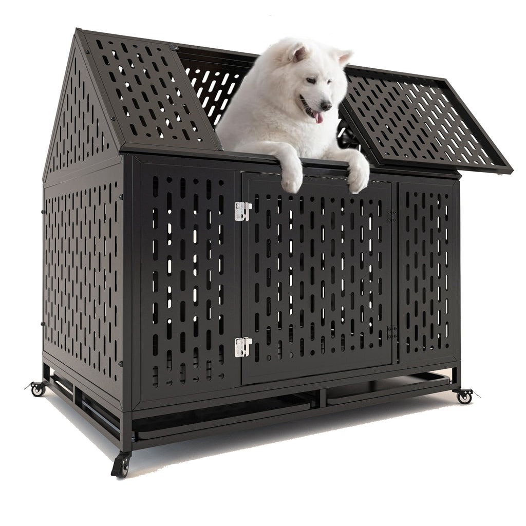 - Pointed Roof & Top Door: The pointed roof design of this large indoor dog kennel provides extra height, expands living area, suitable for large dogs. The top door allows you to interact or check or feed your pet easily, good for high anxiety dogs.