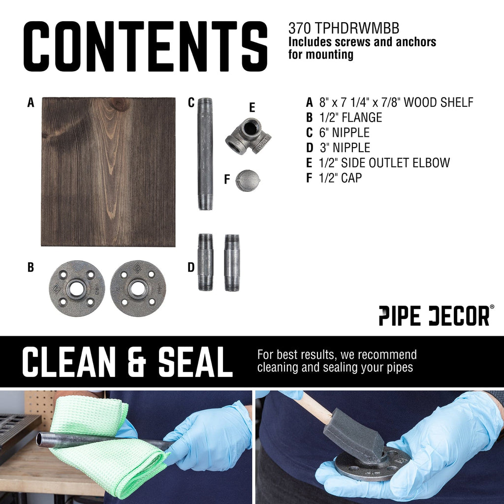 - All fittings are made with durable industrial-grade malleable iron; pipes are authentic black steel