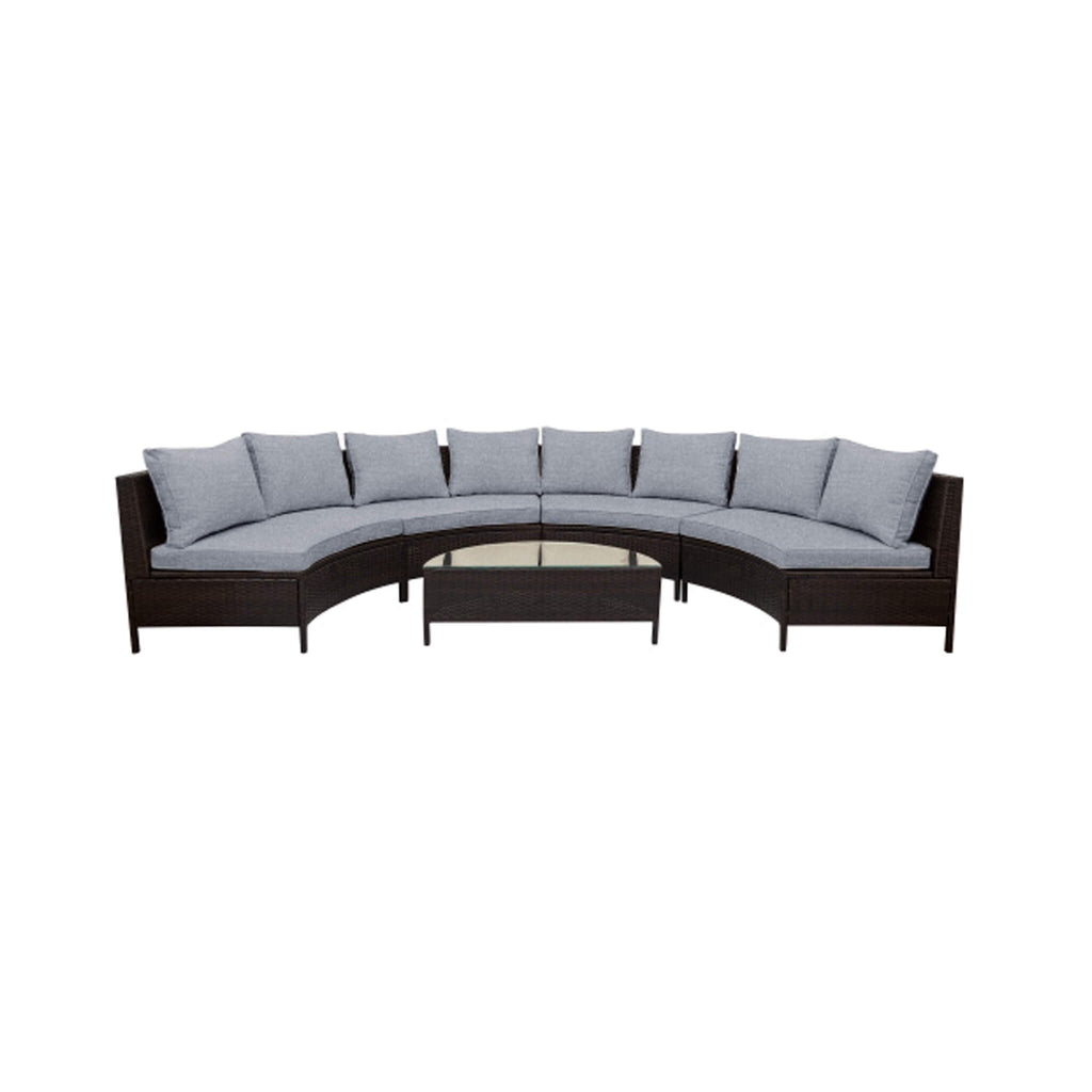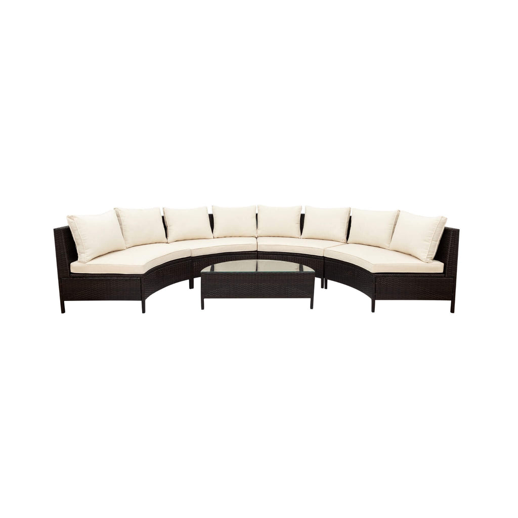 Transform your outdoor space into the ultimate haven of relaxation with this stunning 5-piece rattan patio sofa set. Boasting a sturdy steel frame wrapped in lightweight yet durable PE rattan, this sofa set accommodates up to 350 lbs per seat, offering unparalleled support and longevity. The half-moon tempered glass table adds a touch of sleek modernity, making it the perfect centerpiece for family gatherings or coffee-filled mornings. Whether you’re hosting friends as the sun sets or retreating with a book on a lazy afternoon, this set is designed to upgrade your outdoor experience in both comfort and elegance.