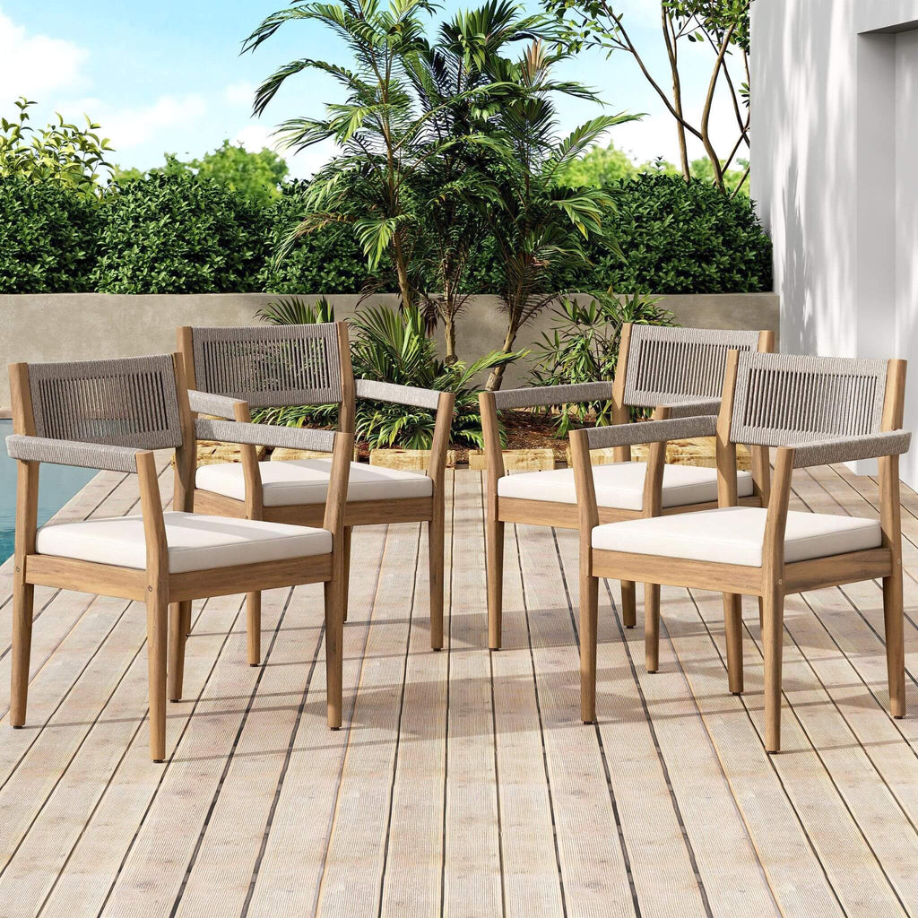 Alora Premium 5-Piece Outdoor Acacia Wood Patio Furniture Set With Braided Dining Chairs, Cushions, And Dining Table (SAK26754)