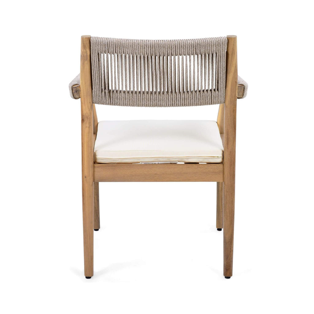 • Enjoy superior comfort with wooden armrest chairs featuring plush 2-inch thick beige cushions, perfect for relaxing outdoors.