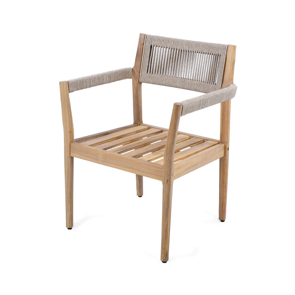 Crafted with acacia wood featuring a Light Teak finish, this set gracefully endures the challenges of weather and time. The robust round dining table and four inviting chairs, with their beige rope weave and plush, weather-resistant cushions, deliver both aesthetic appeal and unmatched comfort. Whether you're enjoying a morning cup of coffee or hosting a summer evening soiree, the set’s blend of versatility and durability ensures long-lasting enjoyment.