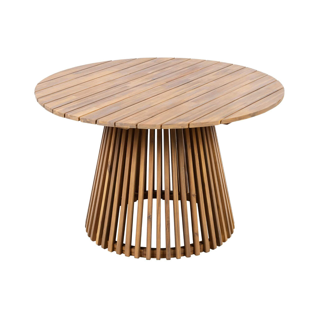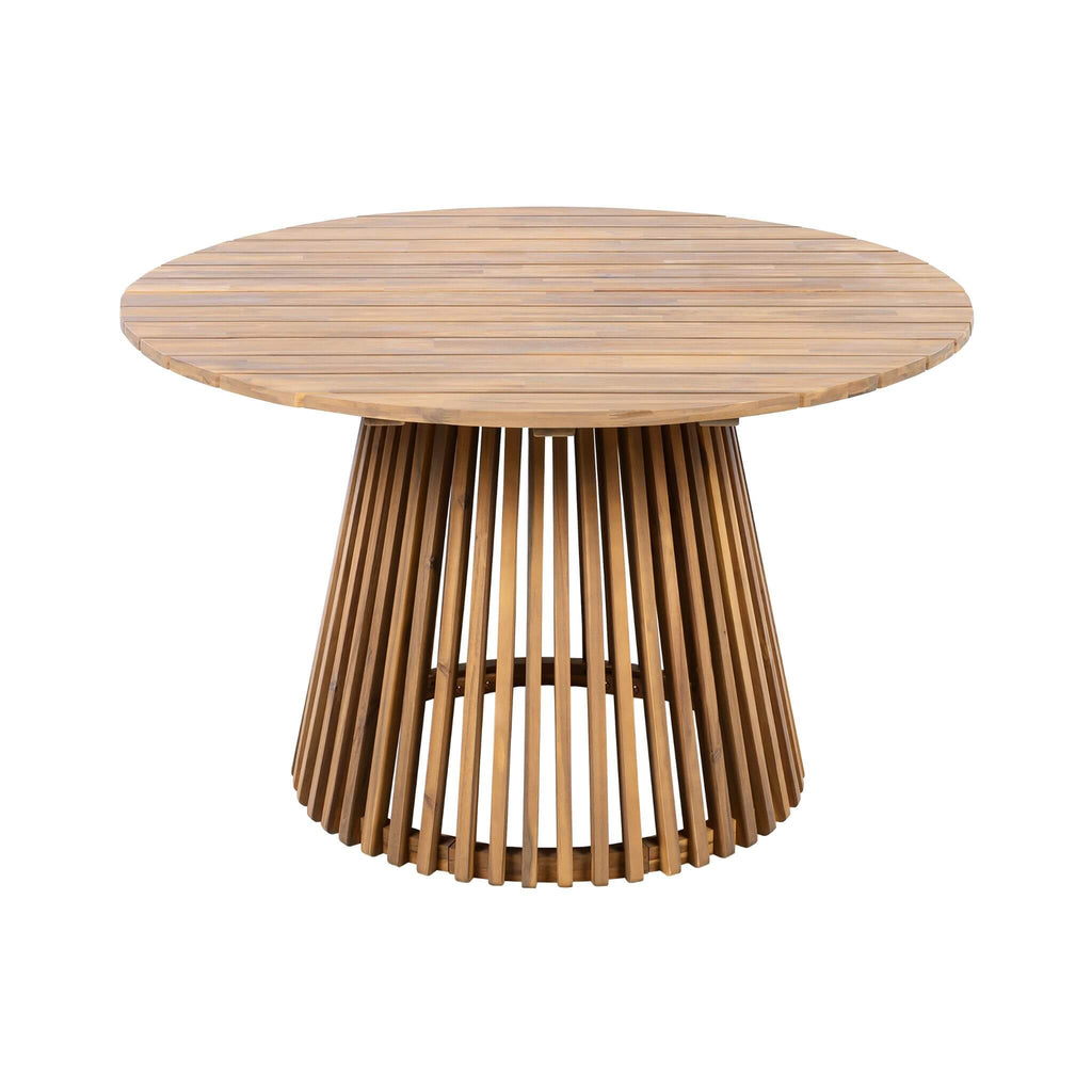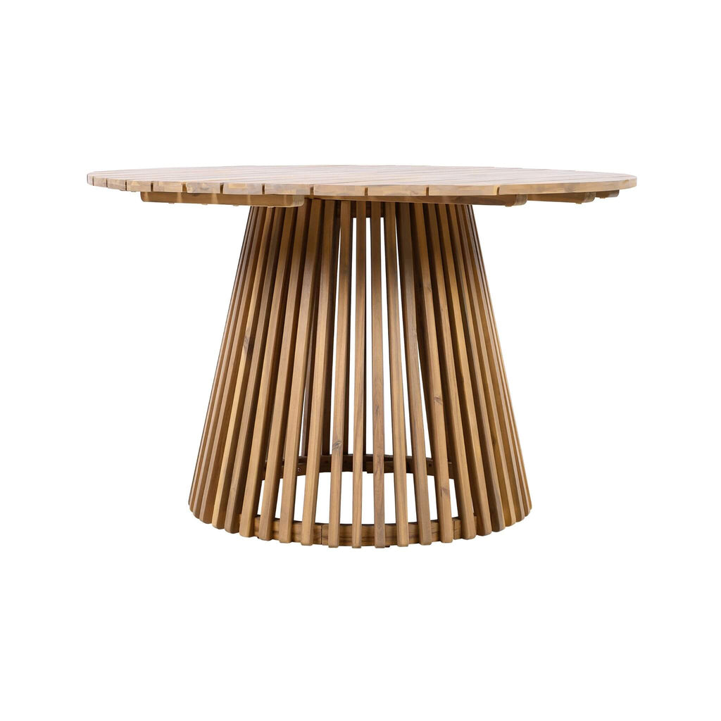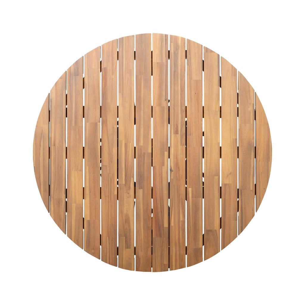 • The 47.25-inch round table features a slatted base that adds style, stability, and prevents water from pooling.