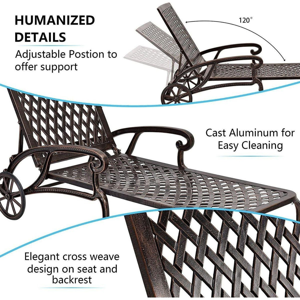 Adjustable Reclining Rust-Resistant Aluminum Cast Poolside Chaise Lounge Furniture