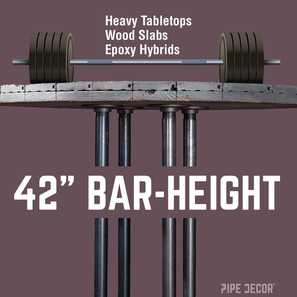 These bar-height table legs make building unique-looking bar tables and counters easy. Made with real steel pipes and iron fittings, these legs will give your bar-height furniture an industrial charm that suits any room of the house. Create a breakfast counter or a real pub-height bar. Perfect for kitchens, bars, dining rooms, living rooms, man caves, dens, workshops, garages, basements, and more. You’ll be living the pipe dream in no time! These table legs are made with thick, 1” steel pipes—perfect for heavy-duty table tops, from custom pieces to thick wood slabs. These pipes have a commanding presence and can hold up to wear and tear. Our tables are also great for restaurants looking to incorporate an urban or rustic look and feel. Complete your restaurant, bar, or café with bar-height table legs. Pair them with any tabletop to create a unique bar-height table and add an eye-catching style to your establishment. Whether you’re just starting your business or doing a bit of upgrading to your design, these bar-height table legs will surely impress your guests. Watch the big game, enjoy appetizers with friends, play cards, host a bourbon tasting, or grab some beers on game night. The kit comes with necessary hardware and easy to follow step-by-step instructions.