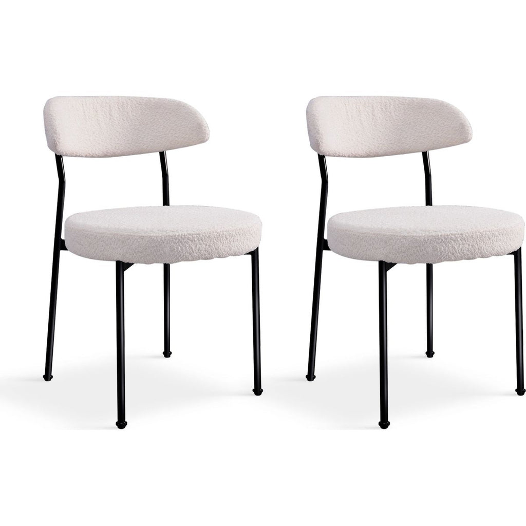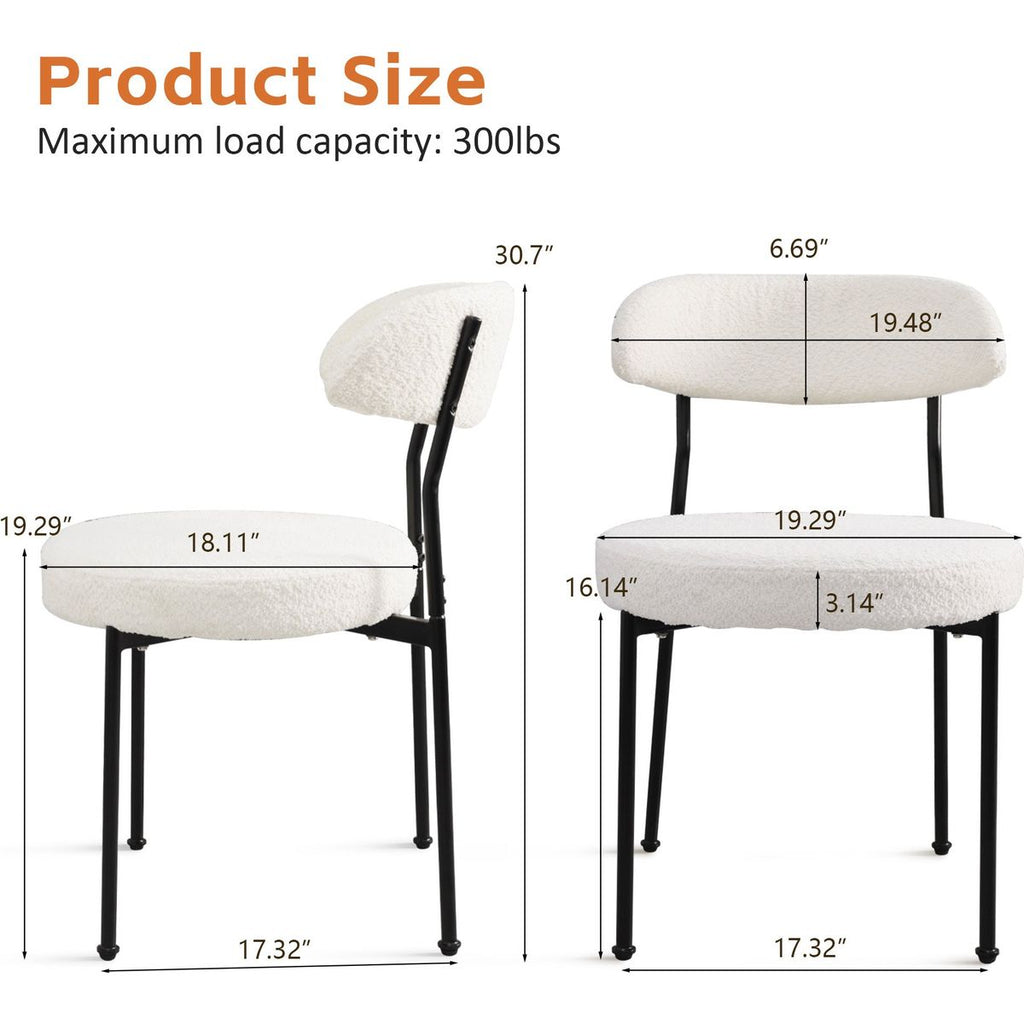 Boucle Upholstered Dining Chairs with Curved Backrest & Metal Legs Set of 2, Beige