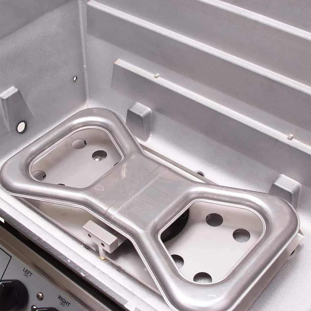 • The dual stainless steel Bowtie Burner ensures even heat distribution, eliminating hot spots and providing consistently delicious results across the entire cooking surface.