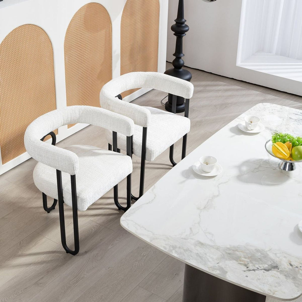 - Round Thickened Cushion: Boucle dining chairs has a round cushion, and the cushion is thicker:3.54inch. Cushion filled with high-density sponge, to provide you with a more comfortable experience.