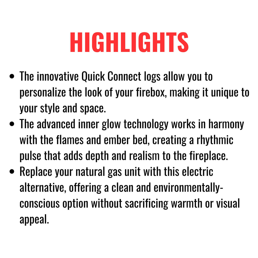 - The Quick Connect moveable logs let you personalize the look of your firebox to match your unique taste.Ā