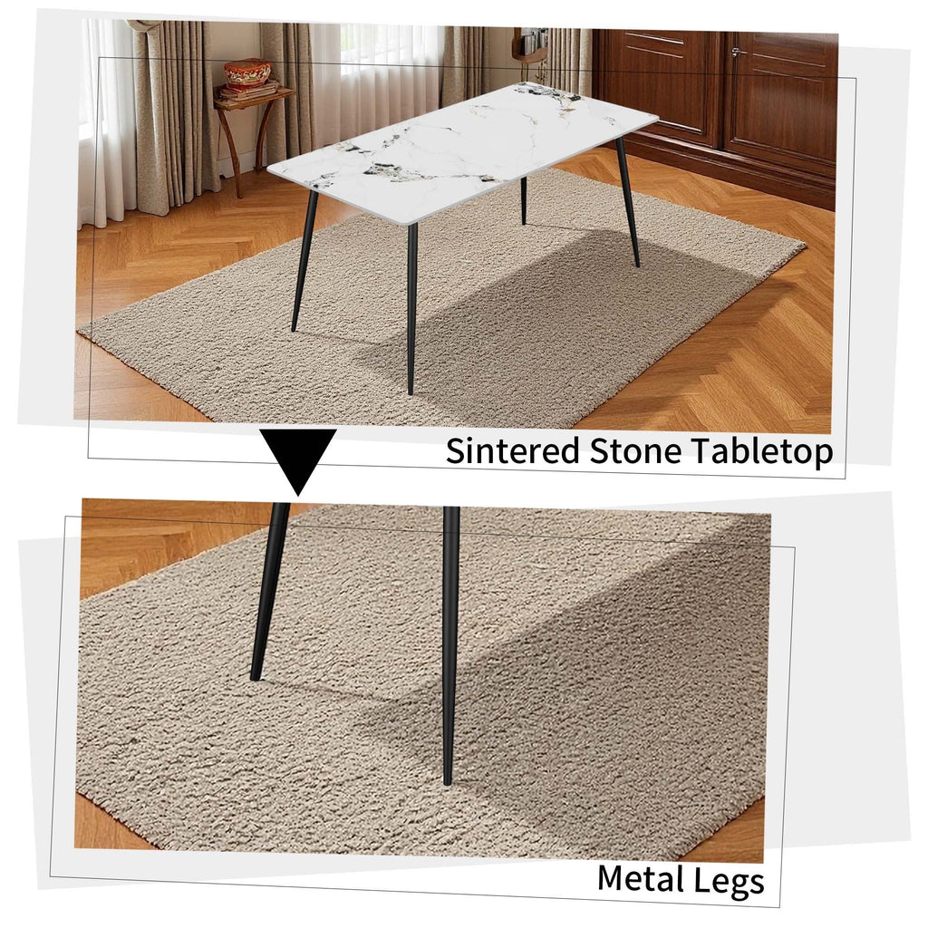 Dining Table with Sintered Stone Tabletop and Metal Legs, 70' Rectangular Modern Kitchen & Dining Room Table