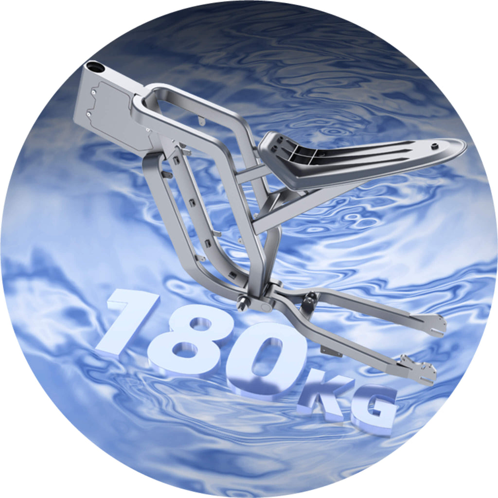 - Ride in total comfort with front and rear suspension that absorbs shocks and bumps on any surface.